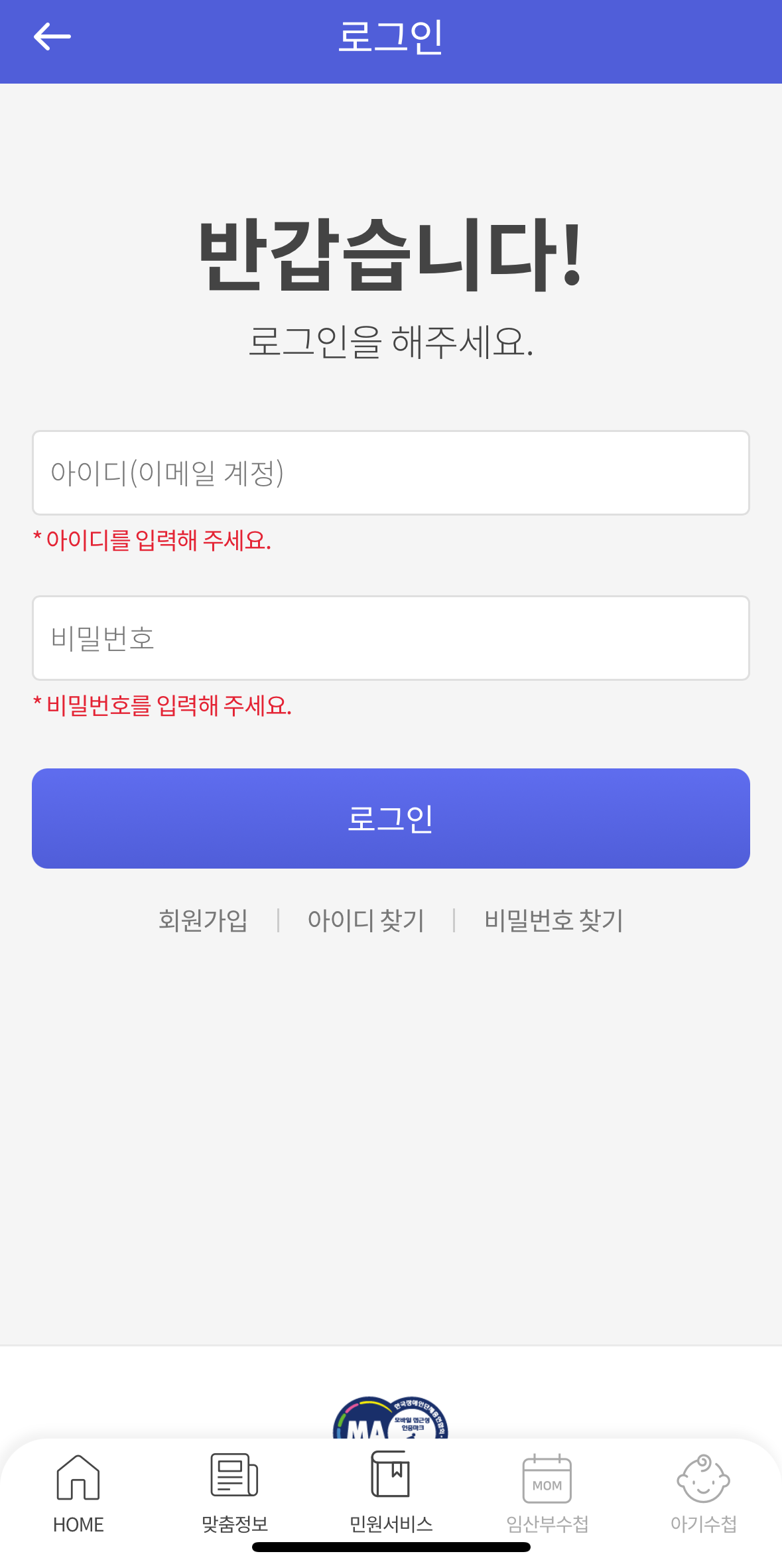 - 아이마중 앱 설치 및 회원가입