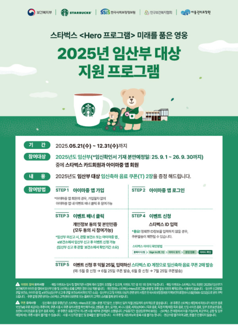 | 신청 방법 | 아이마중 앱 → 임산부 인증 → 스타벅스 ID 입력 → 신청 |